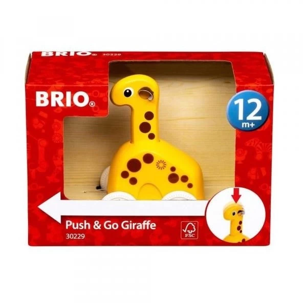 Auf zu spannenden Abenteuern mit der Push & Go Giraffe. Diese süße Giraffe ist der perfekte Begleiter für Kleinkinder beim Krabbeln und Laufenlernen. Einfach den Kopf nach unten drücken, und die Giraffe gibt Gas! Dieses Spielzeug ist aus FSC-zertifiziertem, europäischem Buchenholz und hochwertigem Kunststoff hergestellt. Seine einfache Ursache-Wirkung-Mechanik zaubert ein Lächeln auf jedes Gesicht.