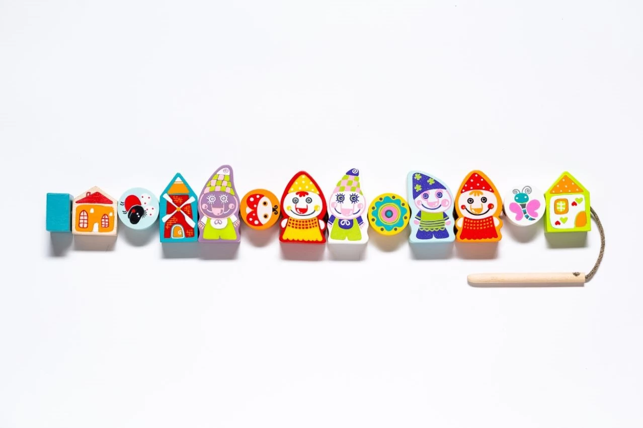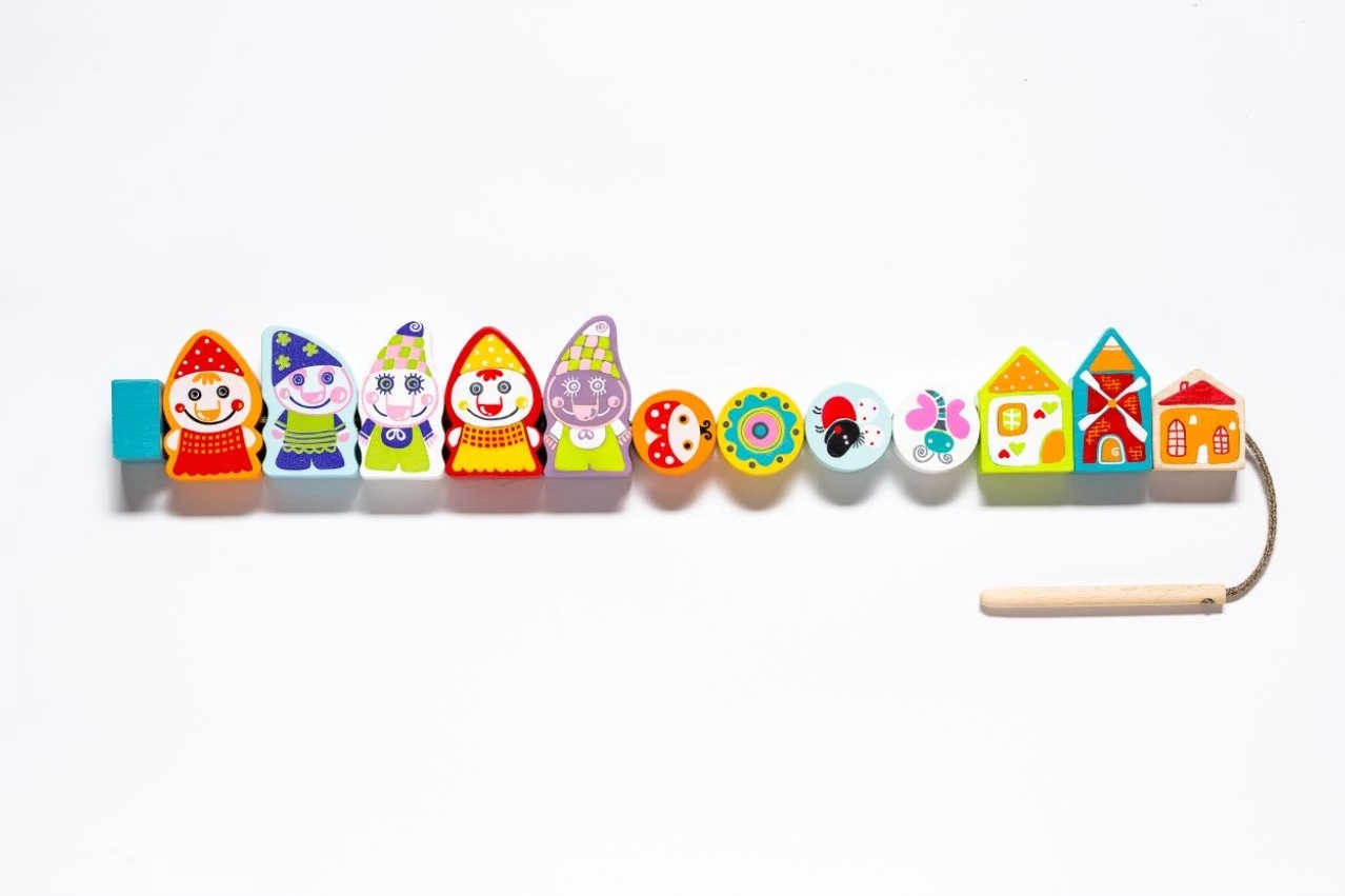 Ein farbenfrohes Verbindungsspiel mit glücklichen Zwergen, ihren Häusern und ihren Haustieren. Lass deiner Fantasie freien Lauf und verbinde die Figuren in deiner eigenen Reihenfolge oder versuche, die Anweisungen von einer der Karten zu kopieren. Mit diesen Zwergen, Häusern und Haustieren kannst du auch unabhängig spielen, ohne zu verbinden. Dieses Spiel stimuliert die Entwicklung sozialer Fähigkeiten und stimuliert die Fantasie.