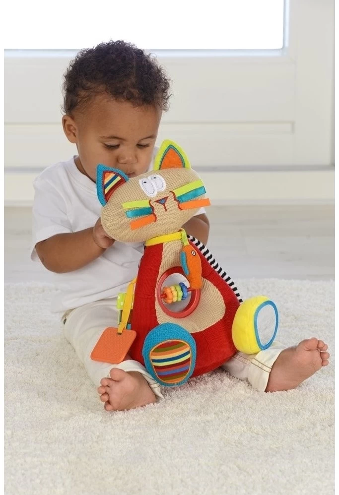 Sophie die Siamkatze hat zwei lustige Freunde: eine quietschende Maus und einen knisternden Fisch. Die Katze hat eine Perlenrassel in ihrem Bauch, einen Spiegel an ihrem Fuß, Etiketten als Schnurrhaare und vieles mehr. Die weichen Stoffe und der Pipsack im Inneren machen diese Katze perfekt zum Kuscheln. Geeignet von Geburt an.