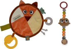Beschäftigen Sie Ihr Kind stundenlang mit diesem niedlichen Set, bestehend aus einer Fiona the fox Kuscheldecke und einer Ollie the owl Schnullerkette. Die Kuscheldecke ist aus strukturierten Stoffen gefertigt und enthält Etiketten in verschiedenen Formen und Texturen, die den Tastsinn anregen. Die Decke hat außerdem zwei Beißringe aus Silikon. Die Schnullerkette enthält Perlen in fröhlichen Farben, die sich nicht nur angenehm anfühlen, sondern auch eine erste Einführung ins Zählen bieten. Die Schnullerkette verfügt über einen Befestigungsclip, mit dem sie leicht an Gegenständen wie Kinderkleidung angebracht werden kann. Abmessungen der Verpackung: 29 x 28 x 3 cm (L x B x H). Geeignet von Geburt an.