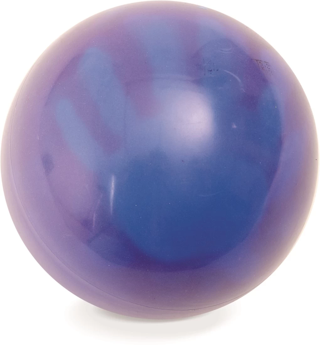 Interaktiver sensorischer Farbwechsel-Ball. Berühre den Ball und die neue Farbe erscheint. Dieser Ball arbeitet mit der Wärme deiner Hand. Drücke auf die Oberfläche und der Abdruck deiner Hände erscheint in einer anderen Farbe.