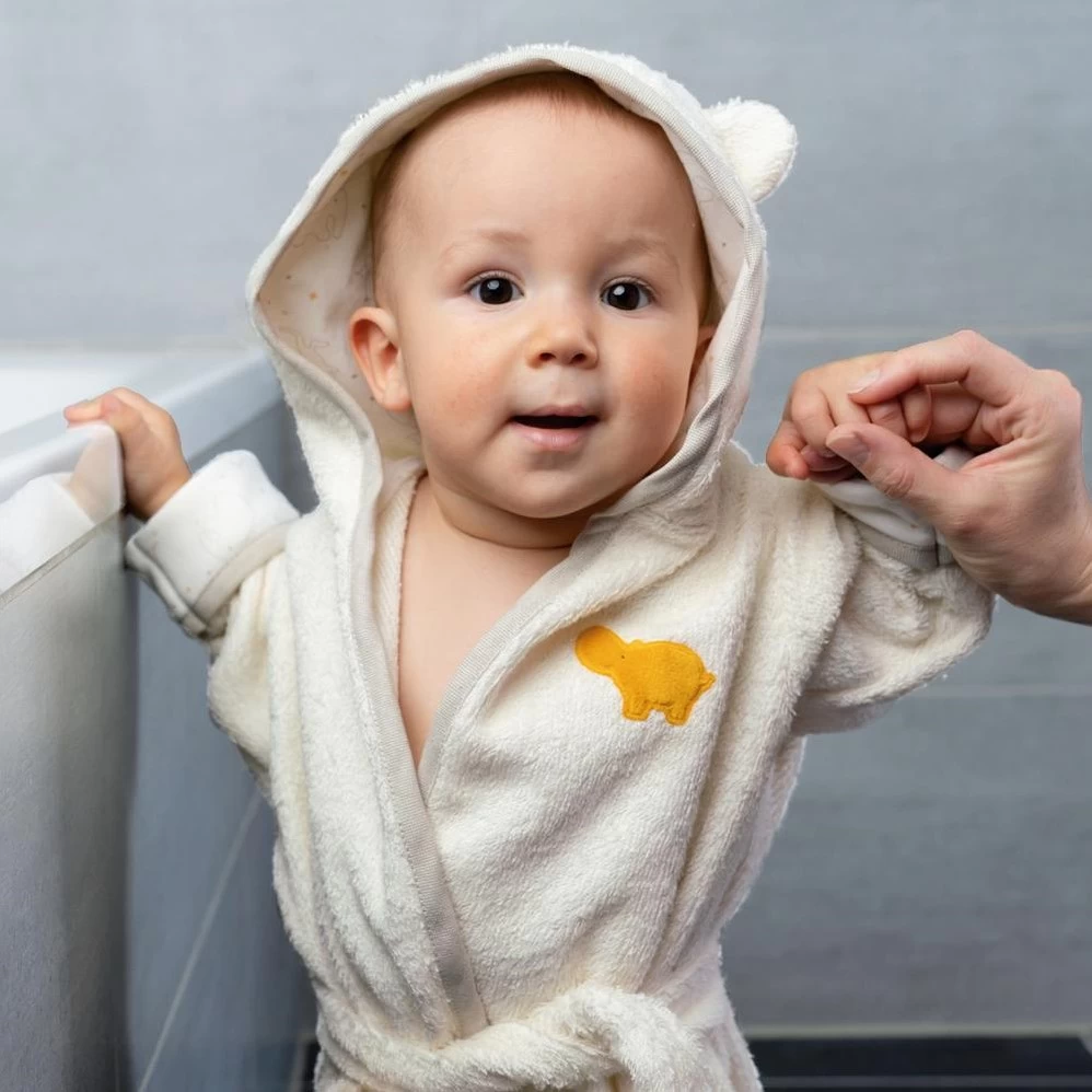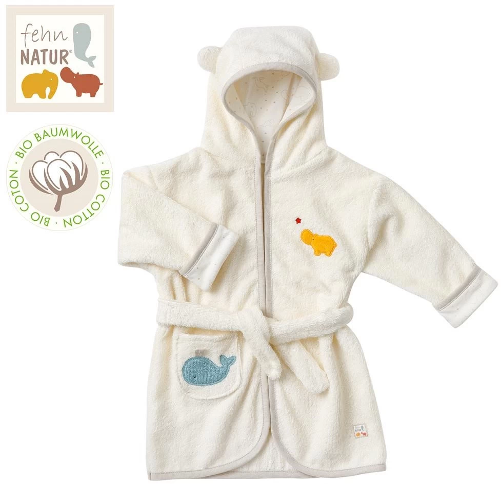 Fehn 056464 Bademantel fehnNATUR – Kuscheliges Kapuzen-Handtuch mit Tiermotiv aus 100% Bio-Baumwolle – Für Babys und Kleinkinder ab 6+ Monaten – Größe: 80 cm