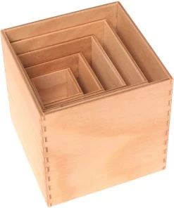 Der Kistensatz ist vielseitig und praktisch: Für die ganz Kleinen schon zum stapeln, sortieren und sammeln, für Größere als Häuschen für kleine Püppchen, Garage für Autos und vieles mehr. Und natürlich sind die schönen Holzboxen auch zum aufbewahren und ordnen auf dem Schreibtisch wunderbar geeignet.