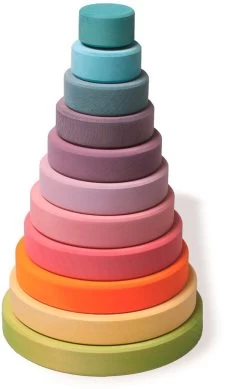 Mit dem großen Scheibenturm können Farben und Größen sortiert, kann gestapelt und gebaut werden. Schult die motorischen Fähigkeiten der Kleinen.