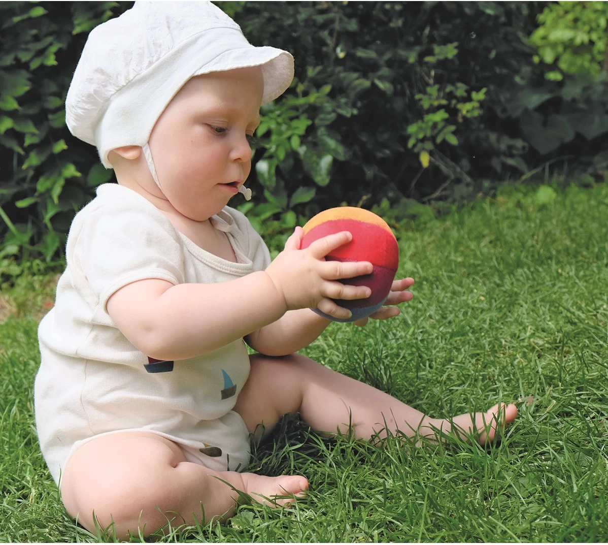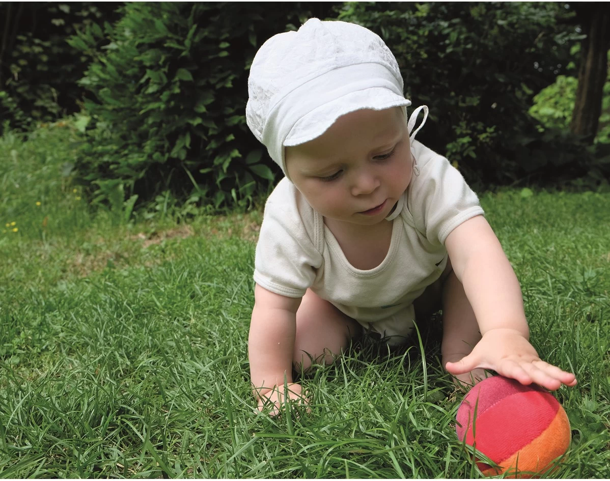 Dieser weiche Ball, klingelt leise und ermutert zum Hinterherkrabbeln.