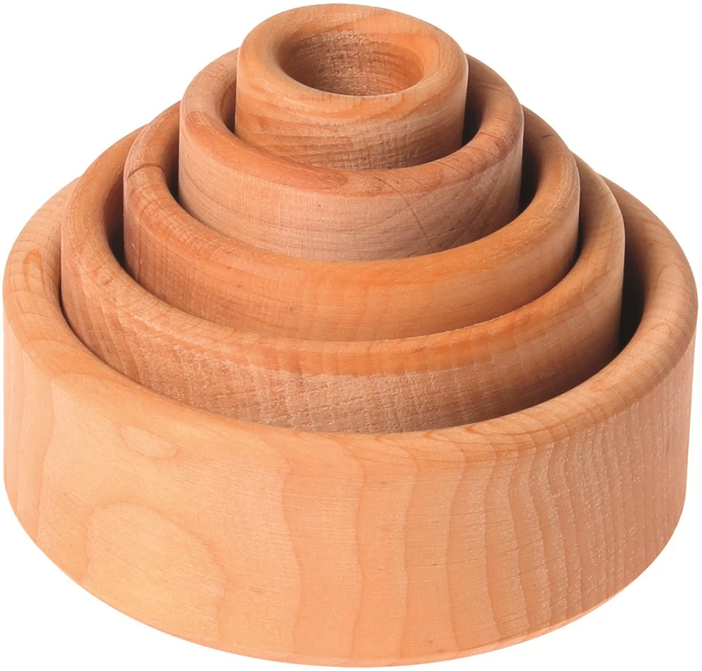 Der Schälchensatz ist ein vielseitiges Spielzeug für das Kinderzimmer: zum Stecken und Sortieren, Stapeln und Bauen, Kochen und Sammeln, als Kochtopf oder Teller… und und und. Für ein fantasievolles Spiel!