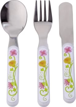- Kinder-Besteck mit 3 Teilen und süßem Blütendekor