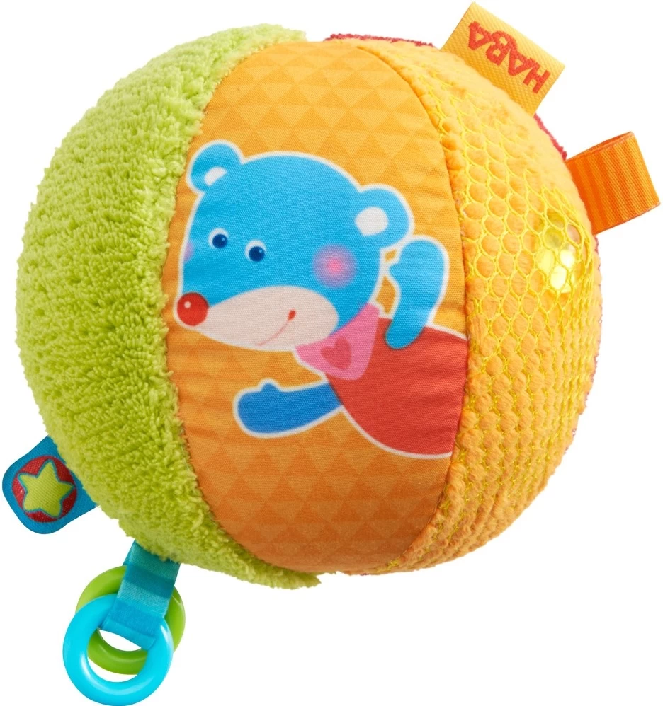 Die niedliche HABA-Serie Maus Merle & Drache Duri lädt Babys und Kleinkinder zum Spielen, Kuscheln und Entdecken ein. Als weiches Schmusetier, vielseitiger Spielwürfel, praktische Schnullerkette oder lustiges Mini-Mobile begleiten die süße Maus Merle und der freche Drache Duri den Alltag der Jüngsten von Anfang an. Die Spielmöglichkeiten mit den Figuren sind vielfältig und stimulieren Sinne sowie Wahrnehmung auf unterschiedliche Weise. Kleine Weltentdecker schließen die Maus und den Drachen aufgrund des liebevollen Designs und der fröhlichen Farben schnell ins Herz – wie den Entdeckerball Maus Merle & Drache Duri von HABA: Er hat unterschiedliche Farben und spannende Oberflächen zum Entdecken. Kommt der Ball in Bewegung, klingelt das Glöckchen im Innern.