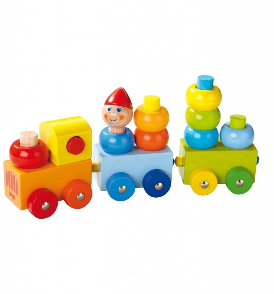 Der HABA-Entdeckerzug Farbkringel hat in seinen 2 Waggons eine besonders farbenfrohe und formenreiche Fracht geladen: Der niedliche Zugführer und die Farbkringel aus bunt lackiertem Buchenholz lassen sich, wie in einem Steckspiel, immer wieder neu kombinieren. Wenn alle Holzteile ihren Platz gefunden haben, kann die Fahrt losgehen. Zwischendurch sollen die Waggons getauscht werden? Da sie magnetisch sind, geht das kinderleicht und schon wird die Reise fortgesetzt. Beim Spielen und Fahren mit dem Entdeckerzug Farbkringel trainieren schon die Kleinsten spielerisch ihre Auge-Hand-Koordination und ihre Feinmotorik. Und nun? Auf zur nächsten Runde!