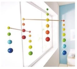 - die bunten Holzkugeln des HABA-Mobile Regenbogenbälle setzen farblich tolle Akzente im Kinderzimmer