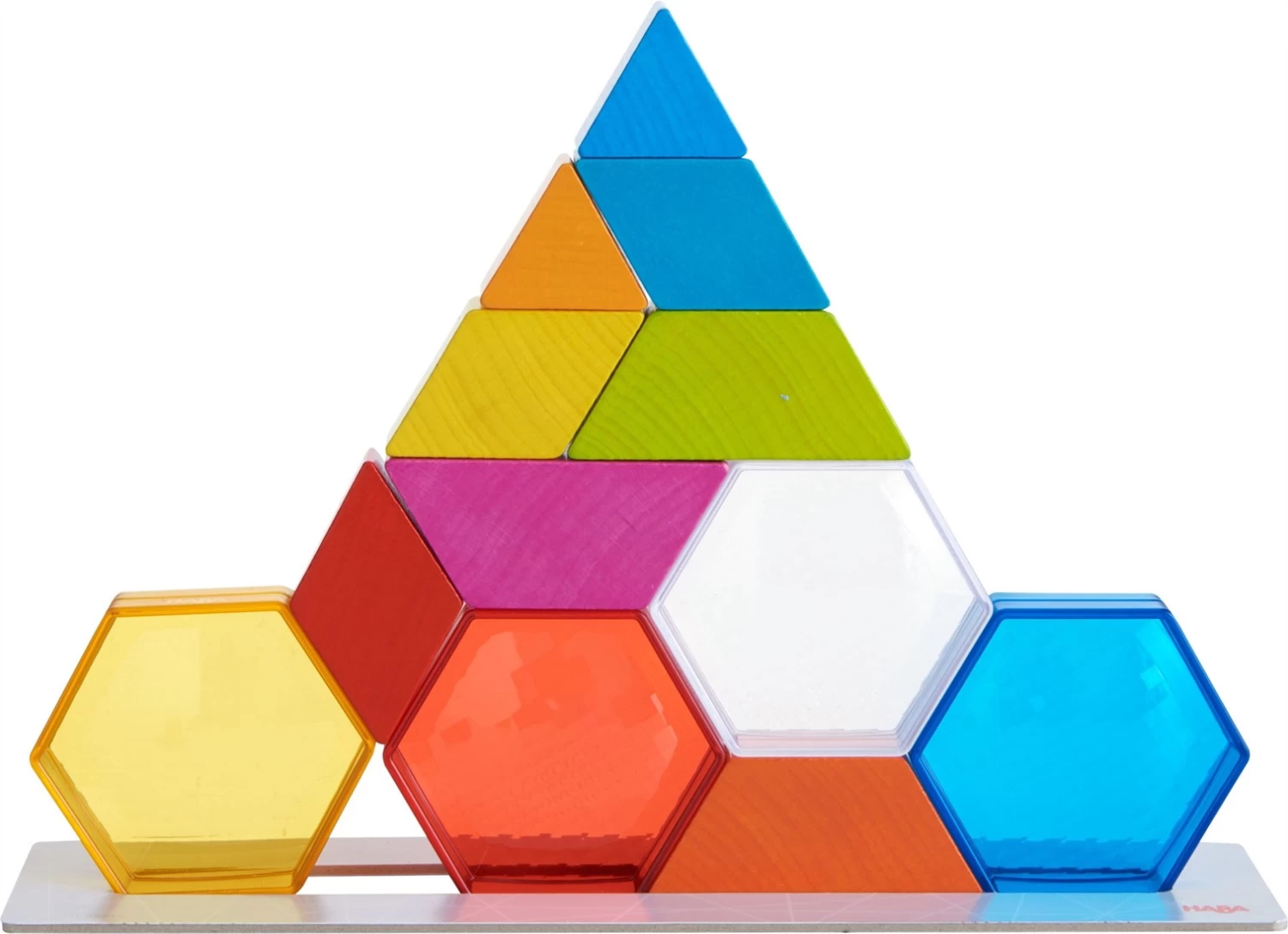HABA Stapelspiel Farbkristalle. Mal ganz bunt aufeinanderstapeln, mal nach den Vorlagenkarten … dieses Stapelspiel bietet allen kleinen Stapelkünstlern viele kreative Möglichkeiten. Die Holzteile und Prismen können in der Fläche ausgelegt oder im Stapelrahmen übereinander getürmt werden. Die funkelnden bunten Prismen und die schöne Form der Stapelsteine garantieren langanhaltenden, abwechslungsreichen Spielspaß!