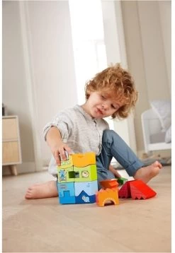 Hape Bunte Holzbausteine für Kinder von Hape | Holzbausteine-Set zum Stapeln Lernspielzeug für Kleinkinder, 50 leuchtend bunte Holzbausteine in unterschiedlichen Formen und Größen