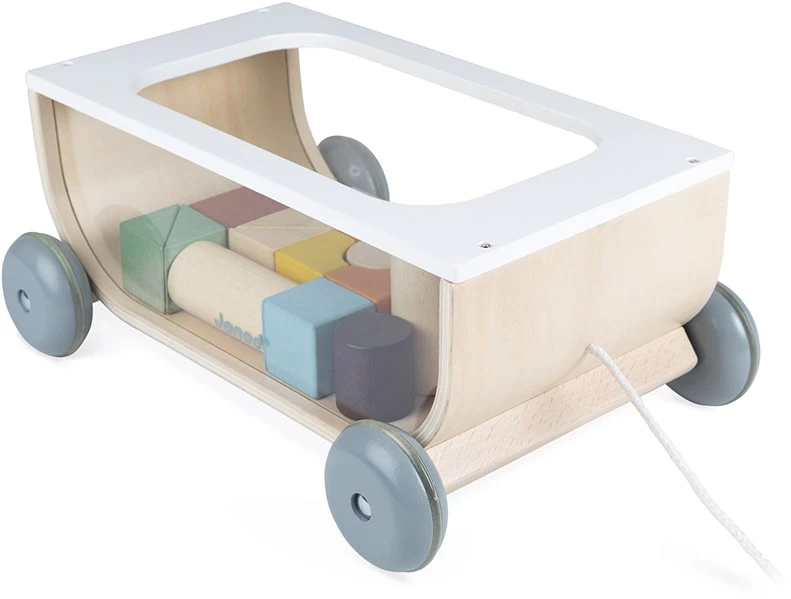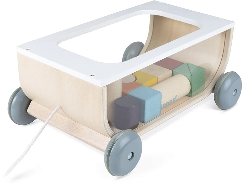 Janod – Bauklötzchen-Wagen Aus Holz – Sweet Cocoon Kollektion – Baby- Und Kleinkindspielzeug Farbe Auf Wasserbasis – Spielzeug Zum Ziehen – Laufen Lernen – Ab 18 Monaten, J04407