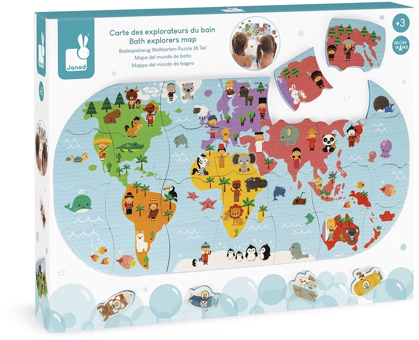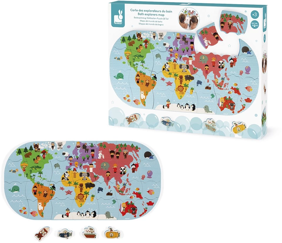 Janod – Forscher-Karte für die Badewanne – Badespielzeug für Babys und Kleinkinder – Handhabung und Geschicklichkeit – Ab 3 Jahren, J04719