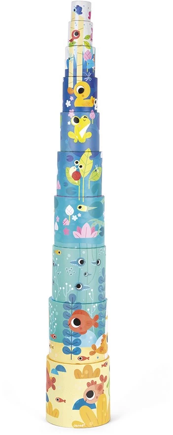 Janod – Runde Pyramide Runde Das Leben Im Teich – Baby- Und Kleinkindspielzeug – Spielzeug Zum Stapeln Und Stecken – Erlernen Der Größen- Und Zahlenbegriffe – Ab 1 Jahr, J02675