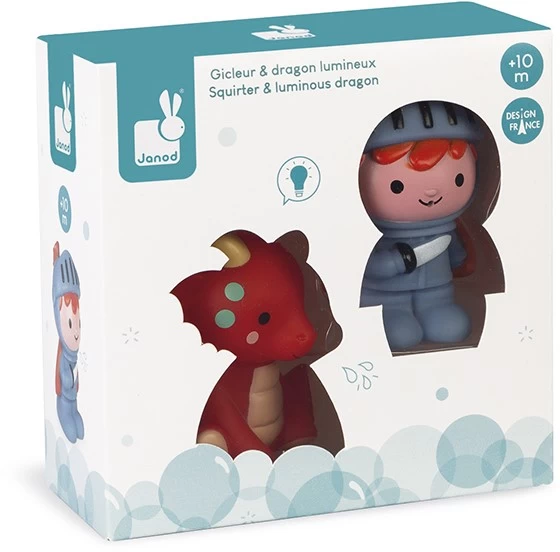 Janod – Wasserspritzer Ritter und Leuchtdrache – Badespielzeug für Babys und Kleinkinder – Ab 10 Monaten, J04701