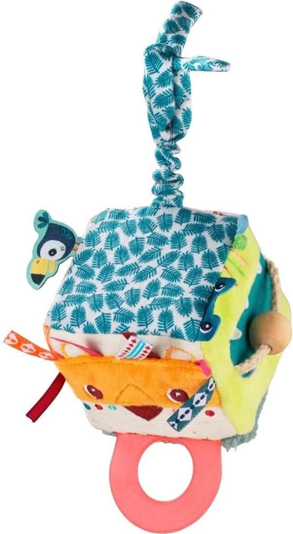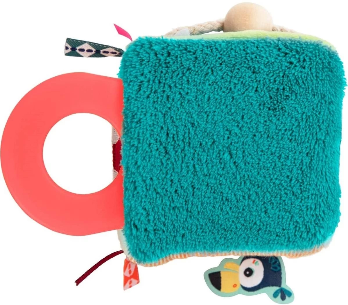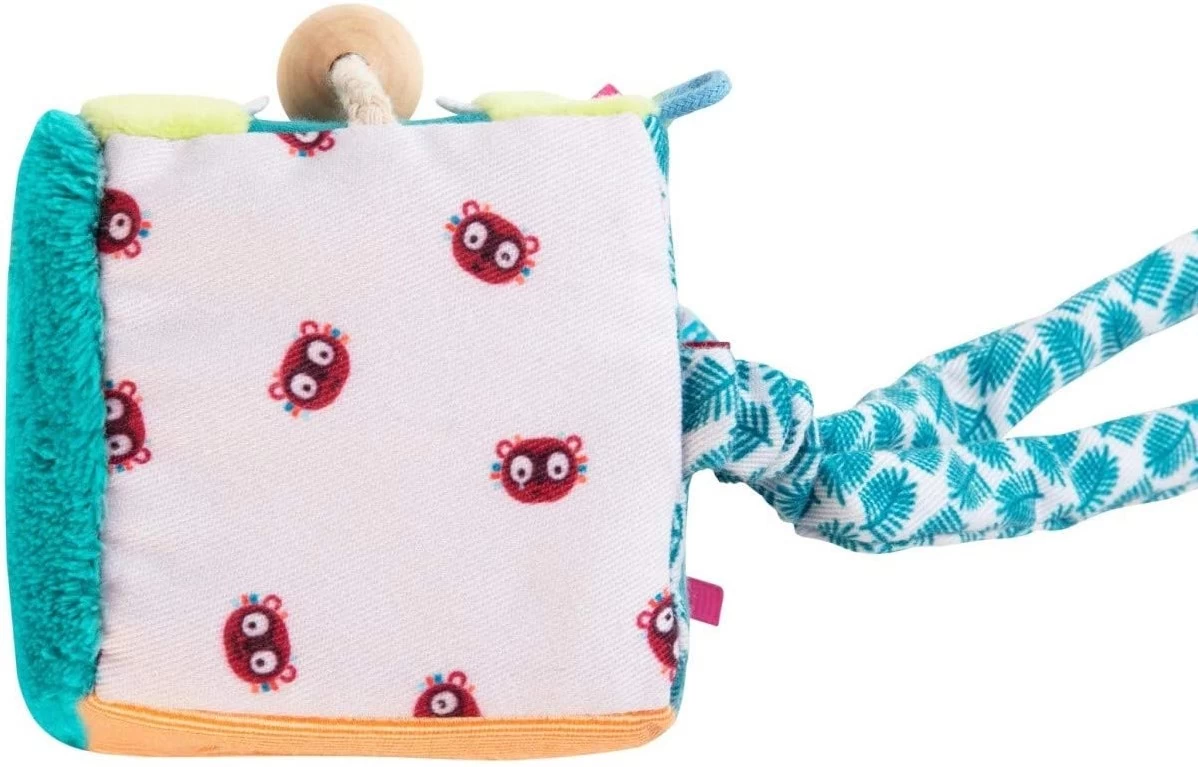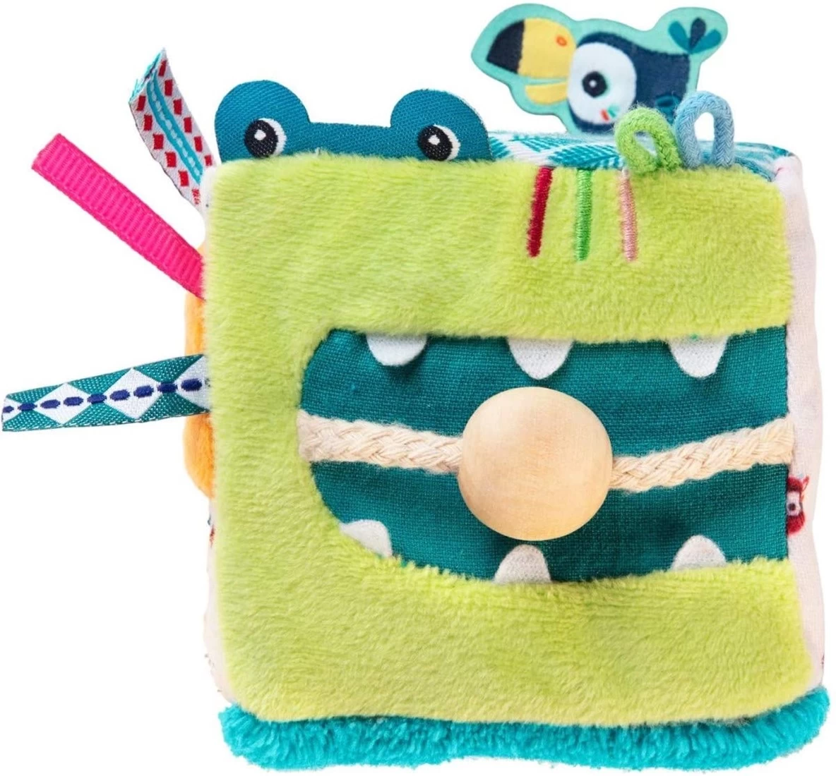Dieser Soft-Würfel zum Thema Dschungel birgt Aktivitäten und Geschichten in Hülle und Fülle. Der Beißring erleichtert das Zahnen. Er regt Sinne, Feinmotorik und Greifvermögen an.