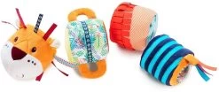 Der Löwe ist los! Jack hilft Ihrem Kind, sein Gehör und seine Feinmotorik zu schulen. Dank der Klettverschlüsse kann es die einzelnen Glieder schnell auseinandernehmen und wieder zu einer Rolle zusammensetzen. Jedes Teil macht ein anderes Geräusch und ist mit weichem, farbigem Stoff überzogen. Das sind 4 Rasseln in einer – die perfekte Unterhaltung für Ihr Baby!