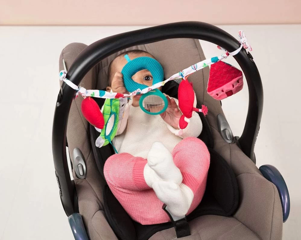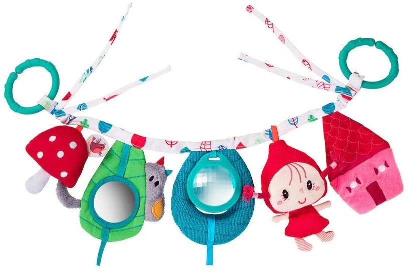 Ob auf Autofahrten oder bei Ausfahrten in die Natur, mit der Rotkäppchen-Aktivitätenkette sind die Kleinsten bestens beschäftigt. Die leicht zu befestigende Kette passt an jeden Kinderwagen und Autokindersitz. Die Farben, Spiegel und Knistergeräusche regen die Sinne und motorischen Fähigkeiten Ihres Babys an. Lassen Sie es verschiedene Formen, Figuren, Stoffe und Geräusche entdecken. Von nun an versüßt Ihnen Babylachen jede Autofahrt.