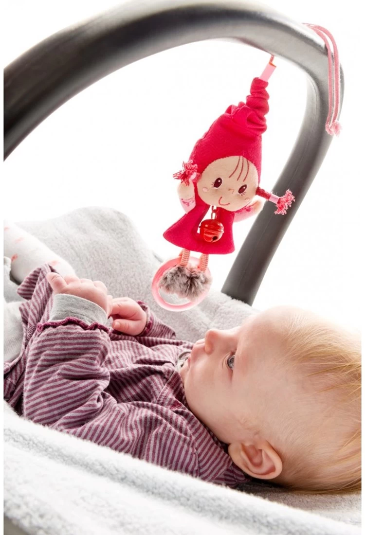 Rotkäppchen hat heute den Schalk im Nacken. Häng sie so auf, dass das Baby sie erreichen kann, und sie macht sich erst gaaanz lang und zieht sich dann schnell wieder mit viel Gebimmel zusammen!