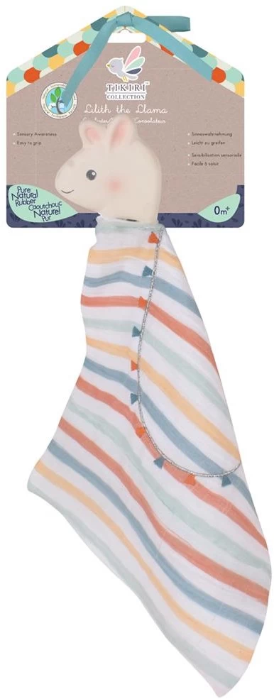 Tikiri 8598006 Naturkautschuk Schmusetuch Lilith, Lama, Schnuffeltuch für Babys und Kinder ab 0+ Monaten, 17cm