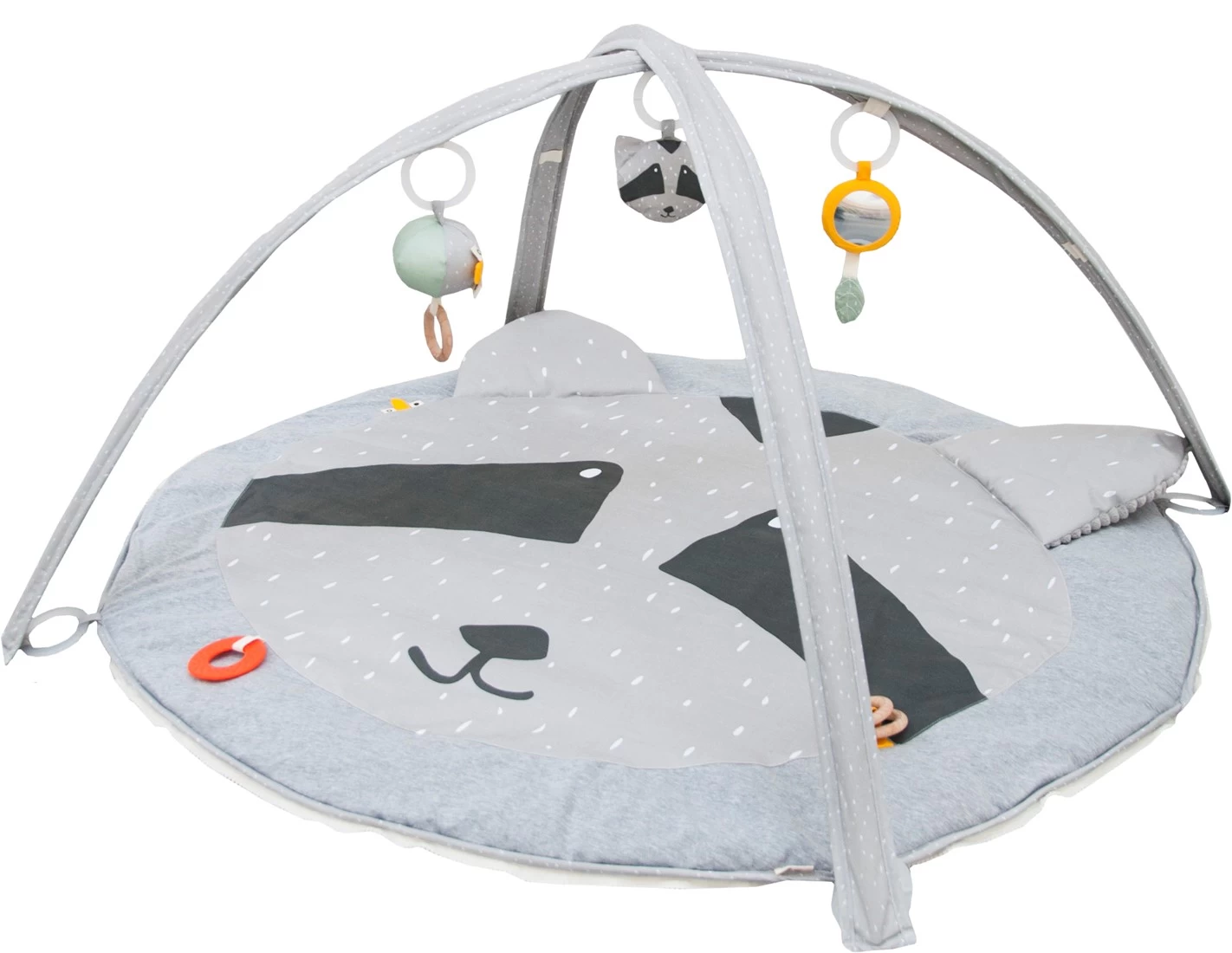 Diese Mr. Raccoon Spielmatte mit zwei Bögen und drei lustigen Activity Toys garantieren stundenlanges Spielen und Spaß! Mit seinen Teethern, Spiegel, Holzringen, Rassel, Knisterpapier, Spielfransen und Klappohren mit verschiedenen Texturen regt diese Spielematte alle kindlichen Sinne an.