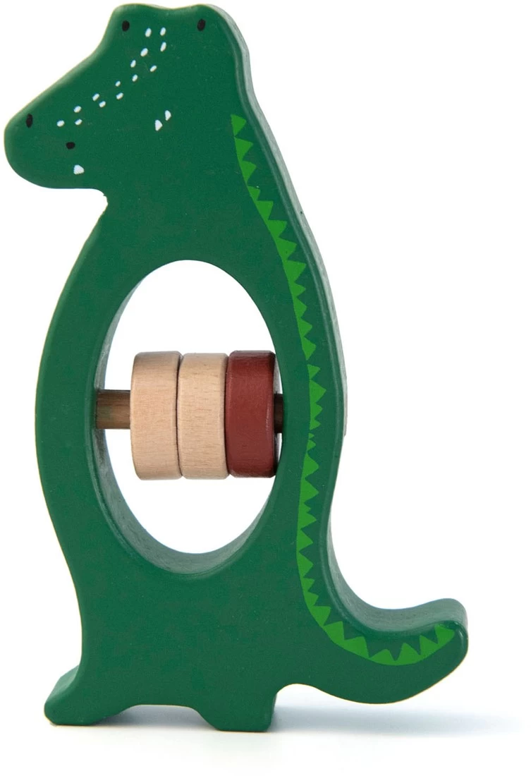 Die Rassel ist aus hochwertigem und 100 % FSC®-zertifiziertem Buchenholz hergestellt. Sämtliche verwendeten Farben sind auf Wasserbasis.