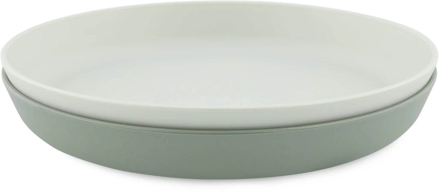 Mit diesen beiden Tellern aus pflanzlichem Kunststoff lässt sich ein gemütliches Ambiente am Tisch schaffen. Das Set besteht aus zwei verschiedenen Farben, die gut zueinander passen. Der Teller hat einen hohen Rand, um das Auslöffeln für Kinder zu erleichtern, die lernen, selbständig zu essen.