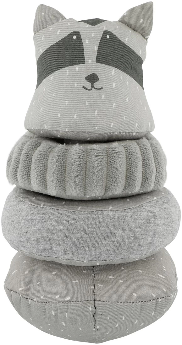 Das wackelige Stapeltier hat einen festen Körper und einen niedlichen Kopf, der jedes Mal, wenn er angetippt oder bewegt wird, klingende Geräusche von sich gibt. Die beiden Ringe bestehen aus unterschiedlichen Materialien und enthalten beide knisterndes Papier. Wie Sie vielleicht schon erraten haben, ist das Ziel, alle Elemente in der richtigen Reihenfolge zu montieren. Und natürlich mit dem Kopf auf der Oberseite. Das Stapelspielzeug stimuliert die Feinmotorik und das logische Denken und ist eine lustige Möglichkeit für Ihr Kind, verschiedene Materialien, Texturen und Klänge kennenzulernen.